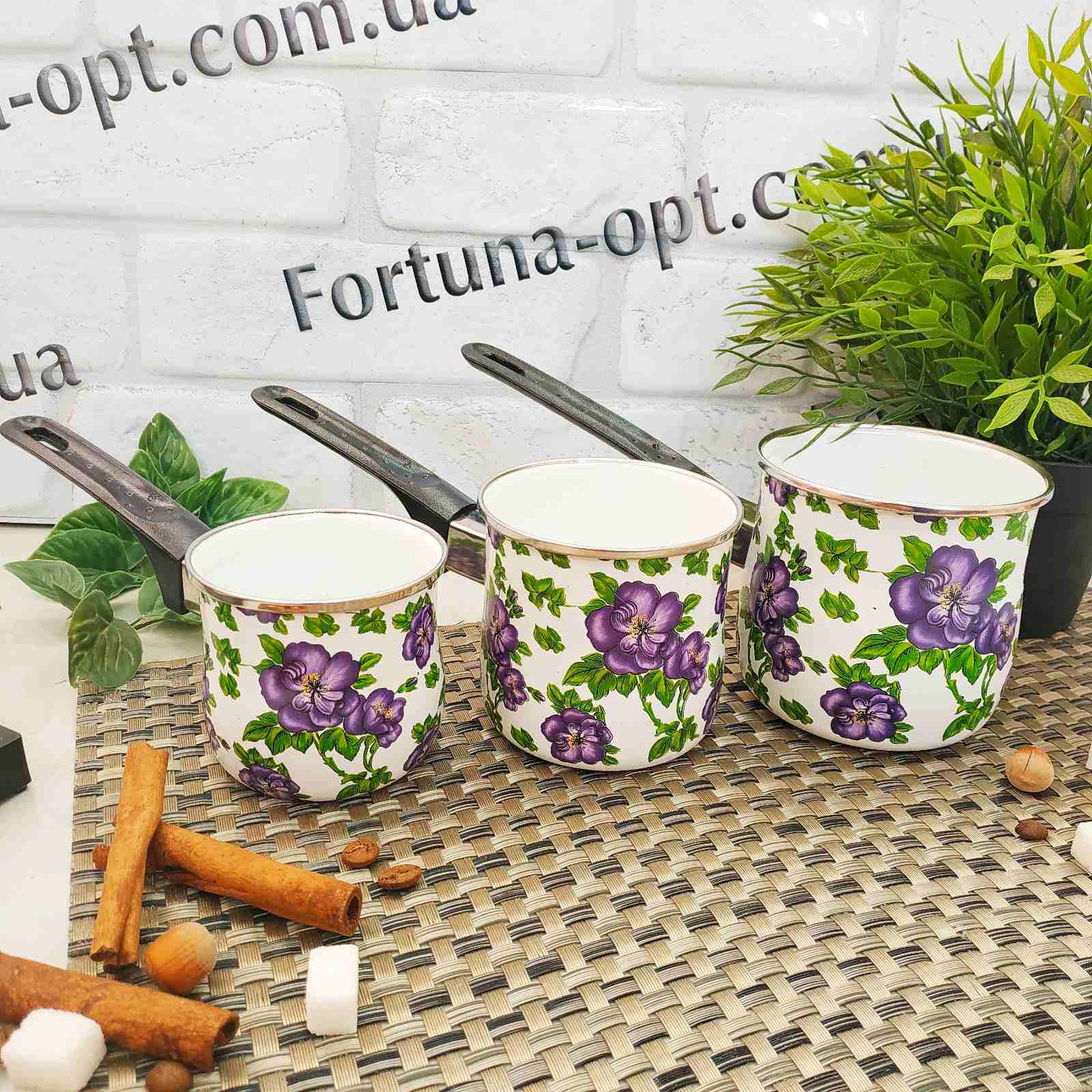Такой набор турок изготовлен из эмалированной стали высокого качества. Такие кофеварки прочные и долговечные. Легко очищается даже в прохладной воде. Имеет современный дизайн и яркий цветочный принт. У такой хозяйственной турки удобная ручка. В ней можно не только варить кофе, но и подогревать воду, молоко и другое. Набор станет отличным многофункциональным подарком для каждой хозяйки и на любой кухне кафе или ресторана.Особенности набора турок A-Plus - 0968