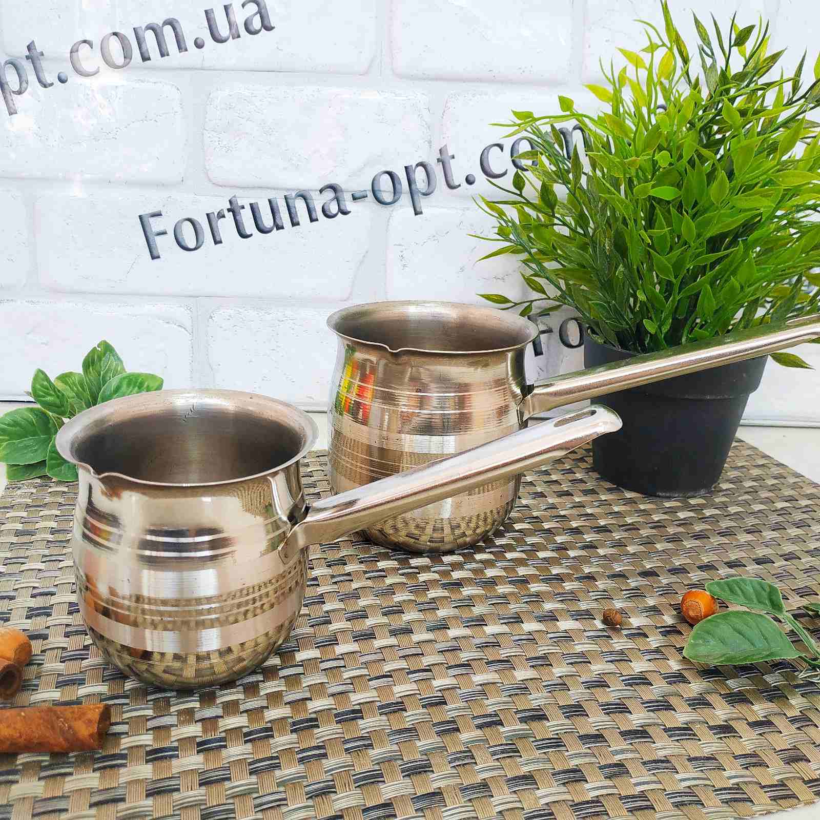 Набор турок (2 шт.) из нержавеющей стали объемом 360 мл и 720 мл. Нержавеющая сталь не вступает в реакцию с напитком во время приготовления, а значит не меняет ее вкус и запах. Кофеварка подходит для заваривания кофе, чая или различных трав или подогрева жидкостей. Такая посуда прочная и долговечная. Легко очищается даже в прохладной воде. Многофункциональный набор имеет современный дизайн и занимает минимум места на кухне.Особенности набора турок нержавейка A-Plus - 0271