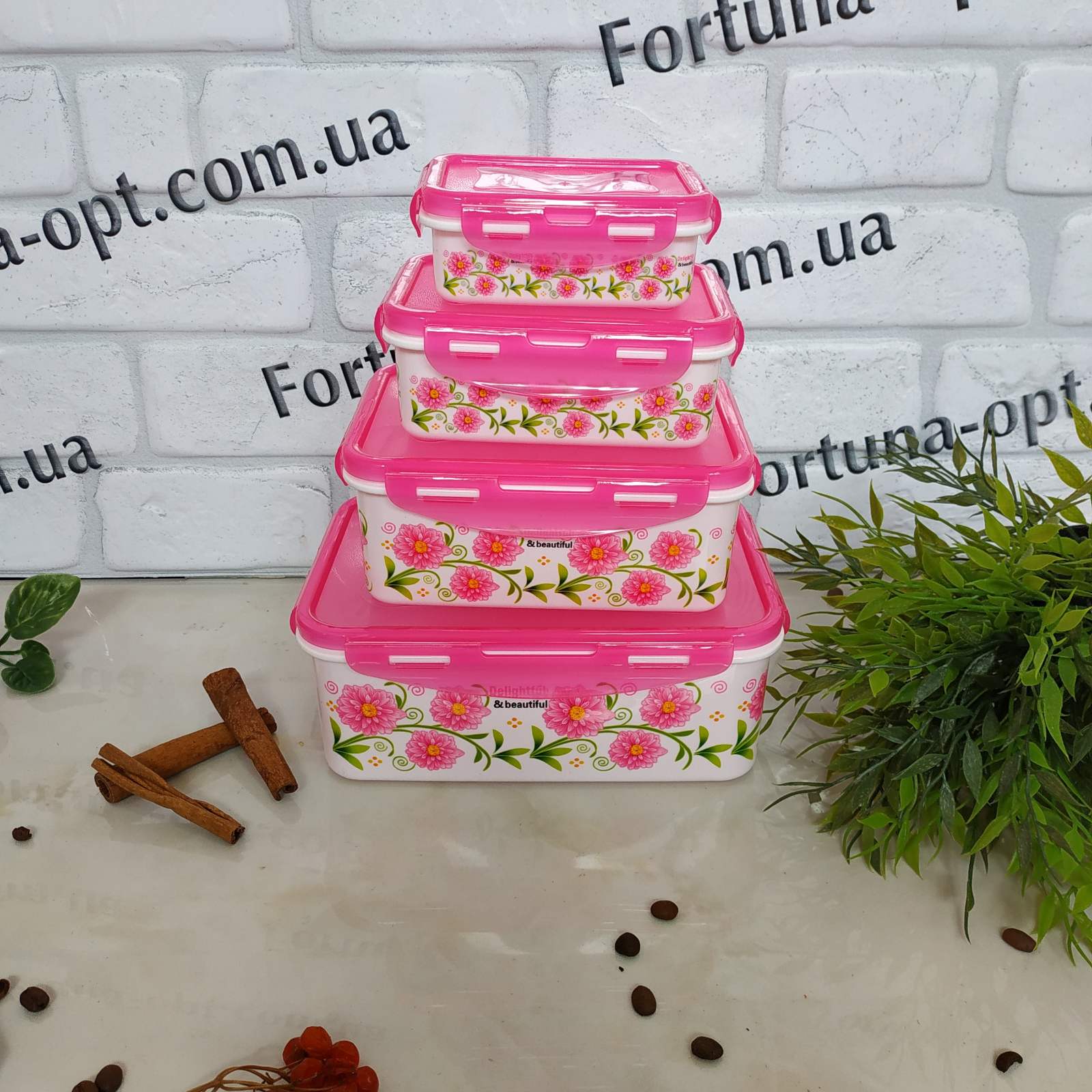 Набор судочков 0821 имеет пластиковые крышки, квадратную форму, пластиковый корпус, цветочный рисунок с внешней стороны,