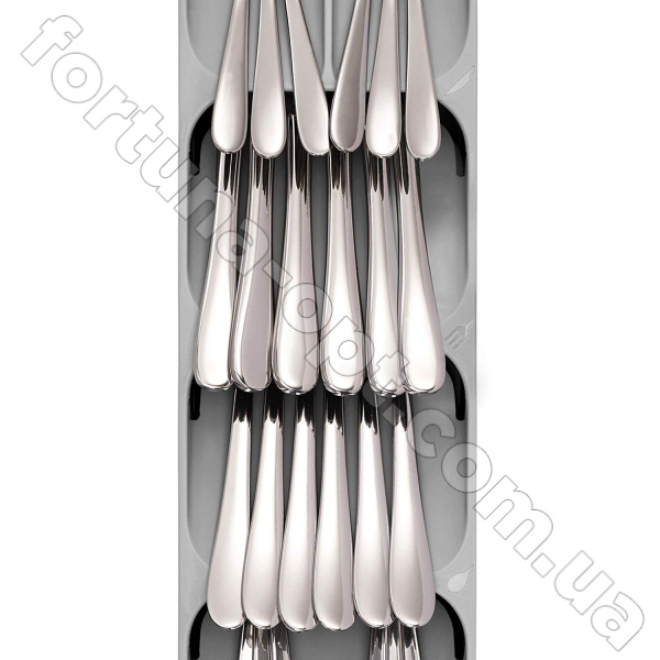 Органайзер для столовых приборов Joseph Joseph позволит навести порядок в ящике с приборами. Аксессуар разделен на пять отделений, каждое из которых предназначено для определенного прибора. Выпущенный в сером цвете, он подойдет для любой кухни. Органайзер выполнен из прочного пластика. Размер: 39,5 х 11 х 5,7 см.