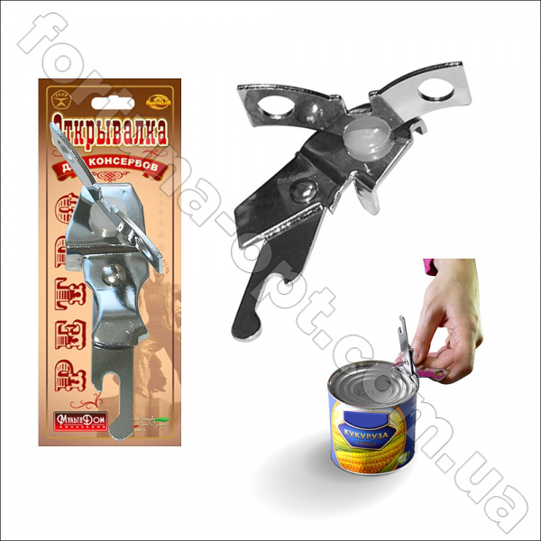Открывалка бабочка- специальное устройство, предназначенное для аккуратного и быстрого открывания консервных банок. Для применения нужно проколоть крышку лезвием и далее вращать ручкой по часовой стрелке по окружности банки.