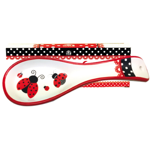 Керамическая подставка для ложек "Божья коровка". Размеры: длина - 23 см, высота - 2,5 см.