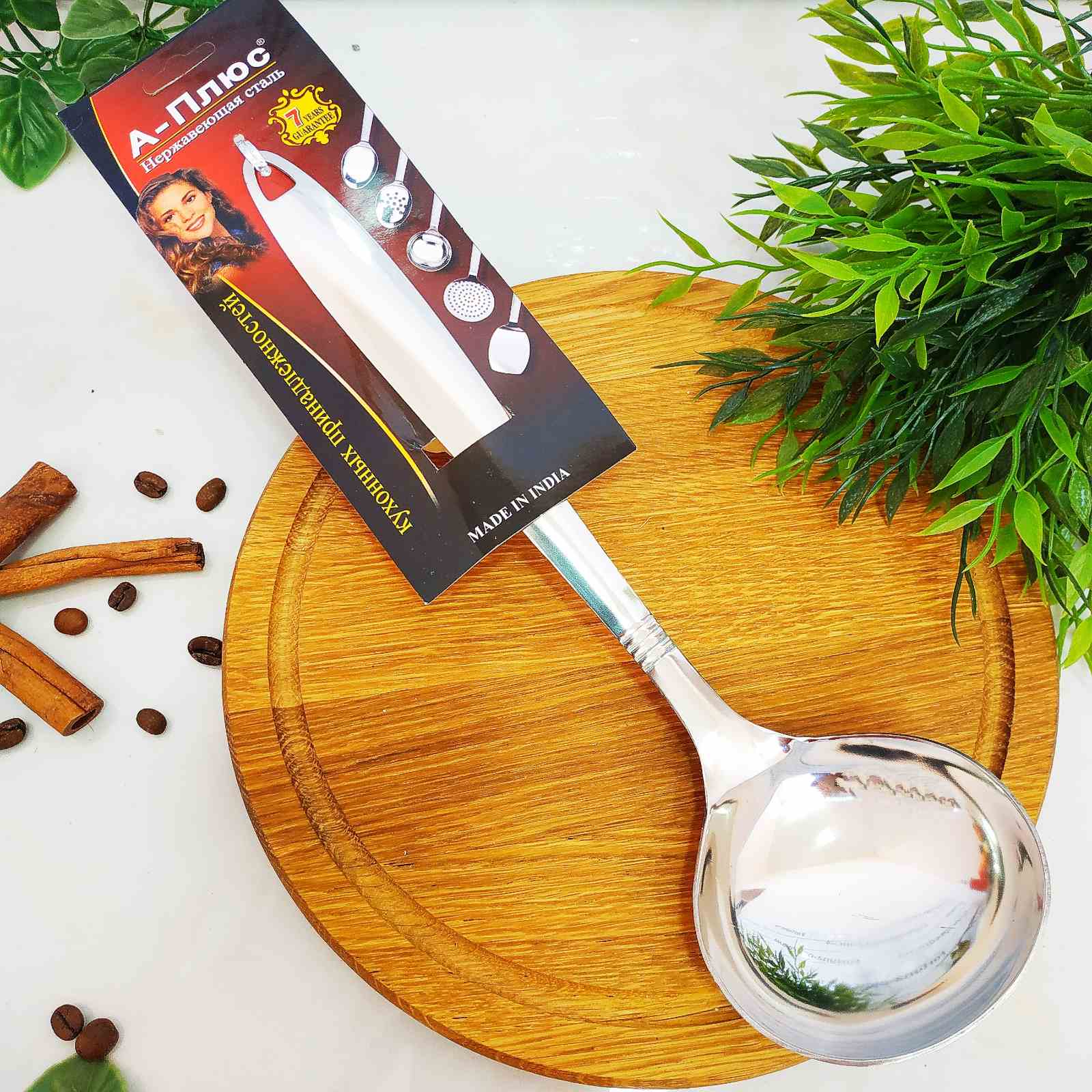 Половник 0233 из нержавеющей стали ТМ Посуда А-Плюс. Если вы ищете нержавеющую посуду в дешевом ценовом сегменте, то посуда А-Плюс как раз то, что вам необходимо. Компания Фортуна предлагает посуду А-Плюс оптом, посуда А-Плюс оптом на самых выгодных условиях в ее полном ассортименте: решетки для гриля А-Плюс, ведра нержавеющие А-Плюс, противни для выпечки А-Плюс, формы для выпечки А-Плюс, наборы кастрюль А-Плюс, термоса А-Плюс, сковородки А-Плюс, чайники А-Плюс, дуршлаги А-Плюс, миски нержавеющие А-Плюс, сита А-Плюс, электротовары А-Плюс на сайте: Fortuna-opt.com.ua