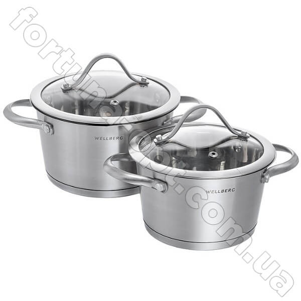Набор кастрюль Wellberg WB - 1089 состоит из 4 предметов - двух кастрюль и двух крышек, которые предназначены для варки и тушений различных горячих блюд. Кастрюли этого набора очень практичны и долговечны. Крышки кастрюль изготовлены из закаленного стекла и имеют специальное отверстие для отвода пара. Сами кастрюли изготовлены из высококачественной нержавеющей стали 18/10 и имеют пятислойное капсульное дно, что позволяет их использовать на всех видах плит.Особенности набора посуды Wellberg WB - 1089