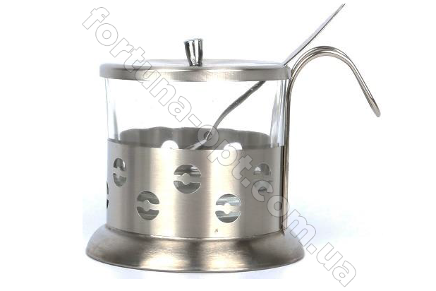 Сахарница стеклянная, в металлическом корпусе, с ложкой, объем 225 граммов.Товары для кухни вы всегда можете приобрести у нас на сайте fortuna-opt.com.ua по самым низким ценам..