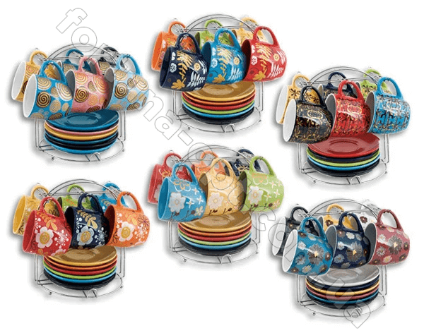 Чайный набор на стойке 12 пр (200мл) 2127. Во время обжига в глине происходят необратимые процессы, во время которых происходит разложение одних веществ и образование других, а также испаряется влага, в результате чего глина искусственным силикатом, или просто керамикой. Керамика обладает прочностью, твердостью, противостоит огню, воде и различным химическим веществам. Для повышения прочности и твердости производители могут добавлять в керамику различные минеральные вещества. Купить чашку, тарелки, наборы тарелок и многое другое вы всегда можете у нас на сайте fortuna-opt.com.ua по самым низким ценам производителя.