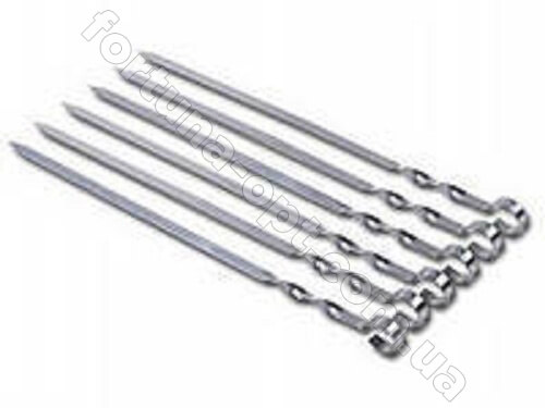 Шампура 1835 ТМ А-Плюс из нержавеющей стали, обработанной специальным антикоррозийным покрытием. В наборе 6 шампуров длиной 610 мм, толщиной 1,5 мм.
