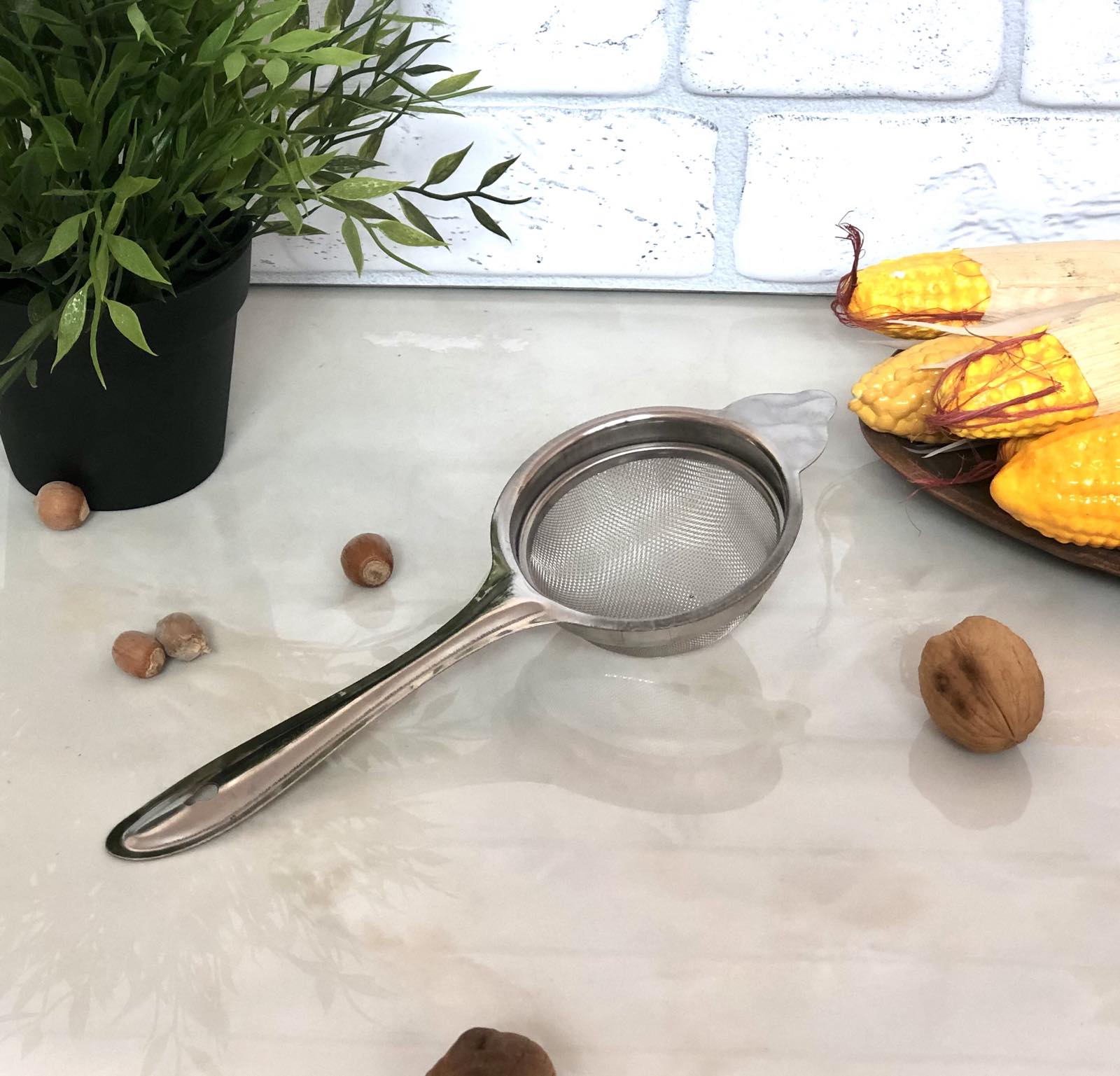 Сито 0335, удобно использовать для процеживания. Сито изготовлено из нержавеющей стали, стойкое к деформации, длительный срок эксплуатации. Диаметр сита - 8 сантиметров.