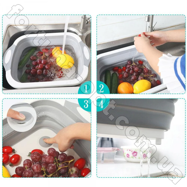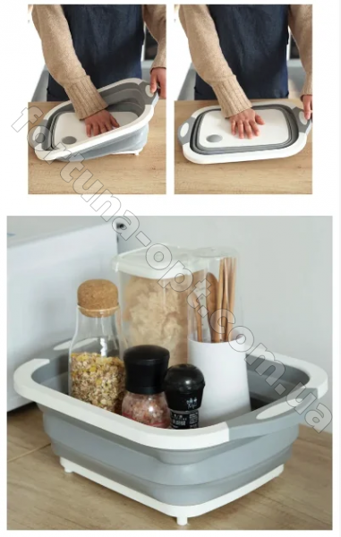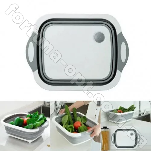 Доска + миска может стать очень удачной покупкой, которая позволит сэкономить Вам пространство в шкафу, время мытья посуды и денежные средства. Вы с помощью одного прибора можете "убить 2 зайцев": и помыть продукт и разделать его.Дизайн современный и эргономичный, к тому же очень компактный в сложенном виде. Каркас доски сделан из прочного пластика, а складная часть для миски из плотного, но гибкого силикона. Материалы не впитывают запахи, не токсичны и экологически чистые, а цвет от продуктов питания не остается на доске. Также материалы стойкие к различным температурам. Доска-миска представлена в комбинации белого и серого цвета.