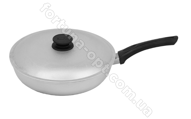 Сковорода изготовлена из литого алюминия и используется для приготовления пищи в небольших объемах. Корпус сковороды хорошо защищён от царапин и деформаций и быстро разогревается. Крышка из алюминия и без отверстия. В такой сковороде очень хорошо тушить овощи, мясо. Пар не выходит наружу и продукты имеют достаточно выраженный вкус и интересный аромат. Сковорода оснащена удобной бакелитовой ручкой. При должном уходе алюминиевая сковорода прослужит довольно долго. Спешите купить!!!
