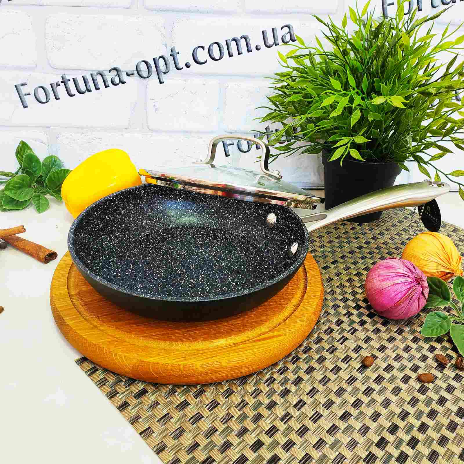 Удобная сковорода из алюминия со стойким мраморным покрытием внутри. Проста в уходе, легко моется и подойдет для жарки и тушения любых блюд. Стальной диск на дне сковородки способствует эффективному распределению тепла и препятствует температурным деформациям. Ручка сковороды из нержавеющей стали, крышка из жаропрочного стекла. Спешите купить!!!