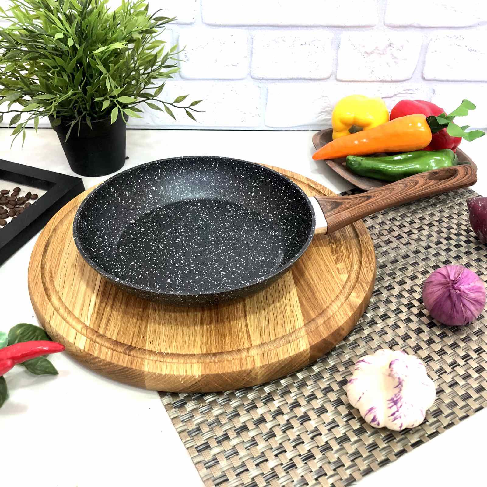Хочу новую сковородку?!Обратите внимание на эту модель с трехслойным мраморным покрытием, устойчивой к царапинам, истиранию и другим механическим повреждениям.