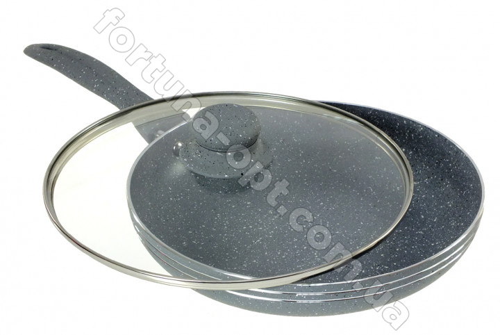 Современный дизайн, диаметр - 22 см, антипригарное мраморное покрытие, изготовлена из высококачественного алюминия, что обеспечивает быстрое и равномерное распределение тепла. Стальной диск на дне сковородки способствует равномерному разогреву, препятствует температурным деформациям, дно нагревается за считанные секунды. Сковорода изготовлена из экологически чистого продукта, который не влияет на вкус пищи. В комплект входит стеклянная крышка. Удобная эргономичная ручка из бакелита с покрытием soft-touch черного цвета. В ней можно делать зажарку для борща или супа, жарить, тушить овощи, рыбу, мясо.Особенности сковороды из алюминия Edenberg EB - 785