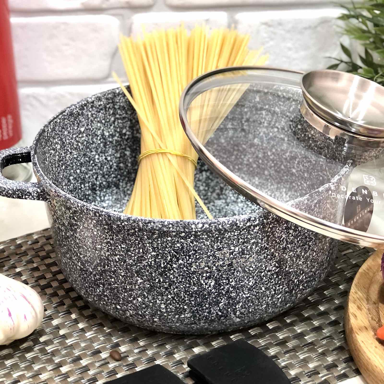 - Изготовлен из высококачественного алюминия, имеет антипригарное мраморное покрытие, толстые стенки.