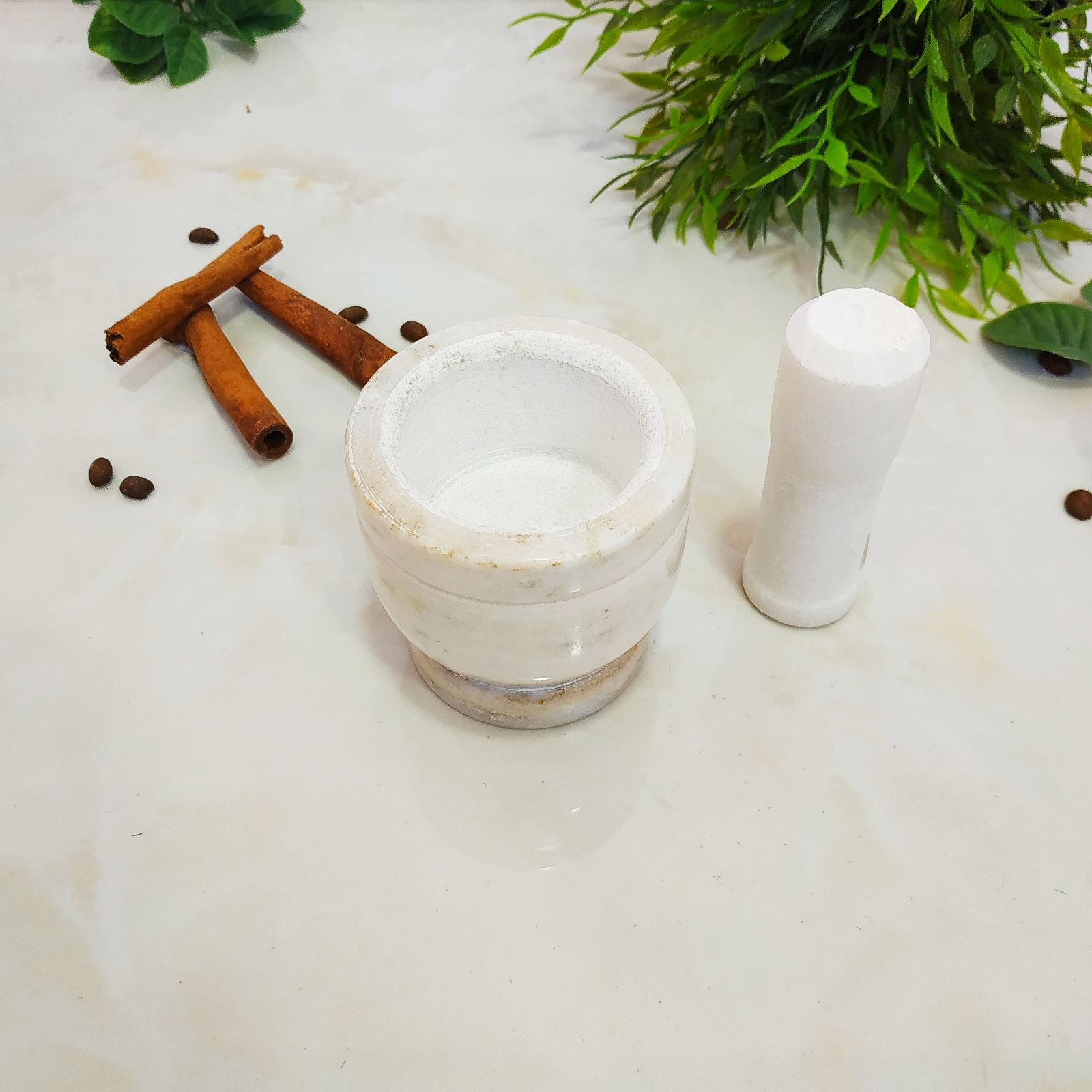 Ступка с пестиком из мрамора А-Плюс 0539 используется для измельчения специй.Характеристики ступки с пестиком A-Plus - 0539