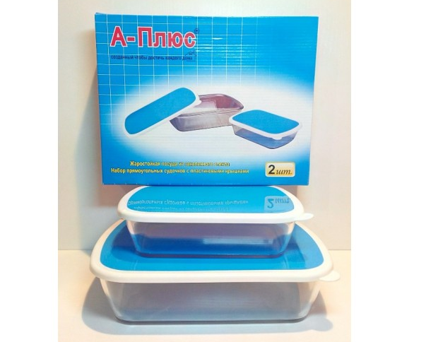 Набор прямоугольных судочков (2 шт.) с пластиковыми крышками из жаростойкого закаленного стекла