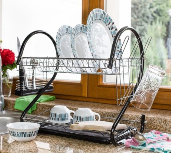 Двухярусная сушилка для тарелок и чашек станет надежным помощником в домашнем обиходе. Благодаря двум ярусам, на ней свободно помещаются тарелки, ложки, вилки, ножи, чашки, бокалы и другие столовые принадлежности.