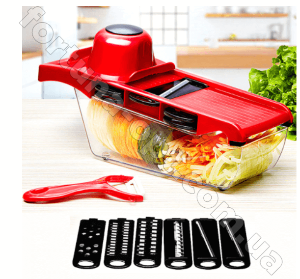 Терка-овощерезка Slicer 6 in 1 c контейнером - незаменимый помощник на кухне. С ее помощью можно нашинковать овощи, фрукты или другие продукты разными способами.В комплекте - 6 насадок для шинковки.