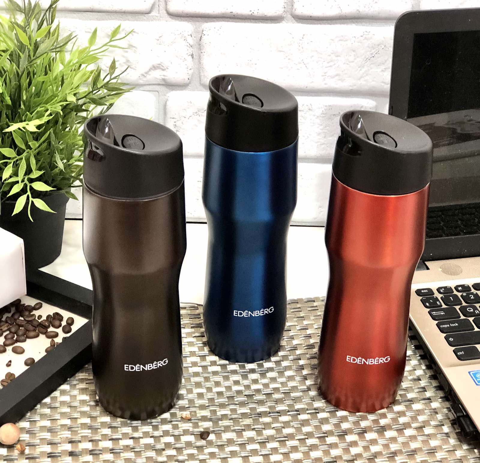 Термокружка с удобной поилкой и обхватом для рук. Термочашка является практичным и максимально необходимым атрибутом активного человека. Корпус термокружки выполнен из нержавеющей стали повышенной прочности, которая обладает устойчивостью к механическим повреждениям. Данная модель оснащена крышкой-клапаном и имеет отверстие для питья. Крышка легко закрывается и открывается нажатием кнопки. Кружка Edenberg EB - 638 имеет приятный стильный дизайн в трех цветах: коричневый, синий, красный.Особенности термокружки нержавейка Edenberg EB - 638