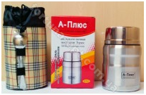 Термос 1771 пищевой для первых блюд выполнен из нержавеющей стали. Если вы ищете хороший термос, то термос 1771 А-Plus как раз то, что вам необходимо. Термос пищевой A-Plus - это отличный термос для сохранения температуры пищи, которую вы взяли с собой. Благодаря широкой горловине, данный термос удобно наполнять различного рода продуктами. Его объем составляет 750 мл, как раз для порции пищи на обед для небольшой семьи или компании. Корпус и колба термоса изготовлены из прочной высококачественной нержавеющей стали, которая не подвержена окислению и не влияет на вкус продуктов. Закрывается термос большой крышкой закруткой, которая сохранит продукты от проливания. В комплекте - чехол и ложка.Характеристики нержавеющего пищевого термоса A-Plus - 1771
