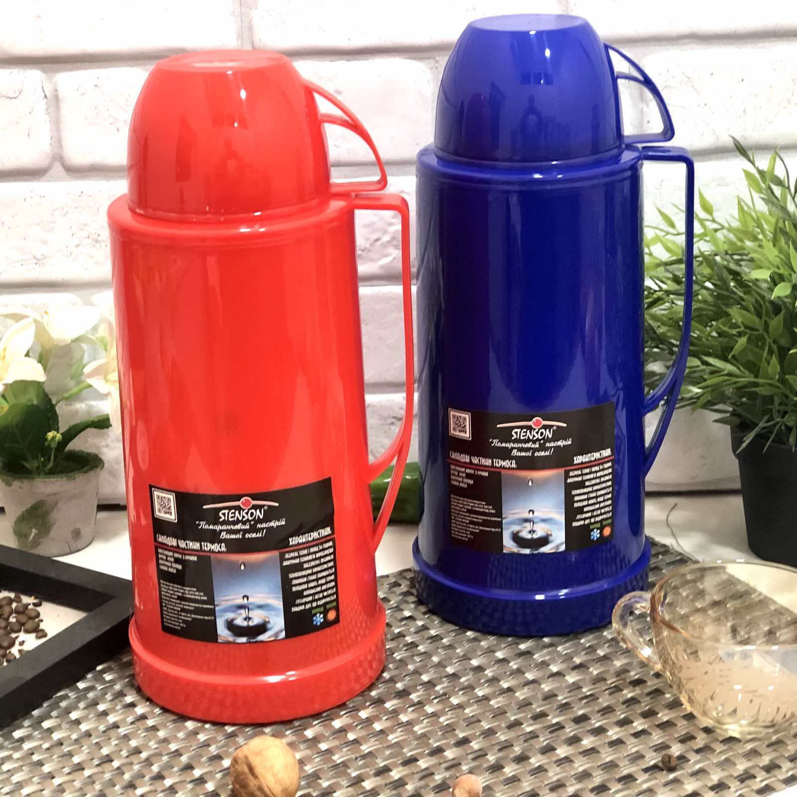 Термос пластиковый 1 литр используется как емкость для сохранения температурного режима жидкости. Благодаря термосу вы можете сделать себе прохладительный или горячий напиток и взять с собой на работу, в поездку, на природу и т.д. При этом вы сохраните не только вкусовые качества любимого напитка, но и необходимую температуру. Термос изготовлен из высокопрочного пластика. А внутренняя колба изготовлена из стекла. Красивый дизайн, только добавит вам удовольствие при применении термоса Stenson. Использование термостойкого стекла позволяет обеспечить более долгое время температурного режима.